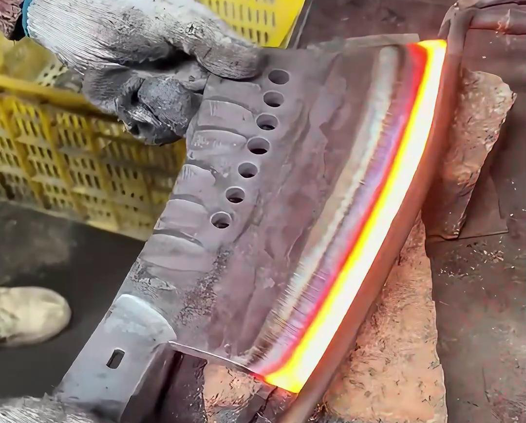 對(duì)淬火后的菜刀進(jìn)行檢查,確保硬度和鋒利度達(dá)到預(yù)期要求。通常,經(jīng)過高頻淬火處理的菜刀刀口會(huì)變得更加堅(jiān)韌而又鋒利。